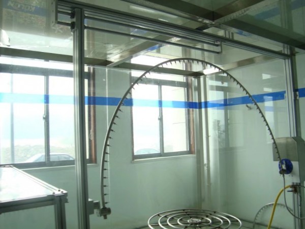 淋雨试验设备由摆管支架、摆管传动、工作旋转台、电气控制四部分组成,其中支架、回转台防护罩、储水箱、试验水加压回流装置、控制台采用SUS304不锈钢发纹板制作。