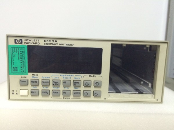 Agilent/HP 8153A光波万用表主框架提供二个插槽,用于插入模块.由于模块可以任意配置组合,因此Agilent/HP 8153A可当作1/2通道功率计,1/2通道光源,损耗测试装置,或作为回波损耗测试装置.