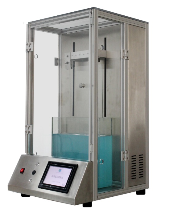 本产品主要用于溶胶-凝胶法等液相法制备薄膜材料。把洁净干燥的基片浸入溶液(溶胶)中,通过预先设置的参数,将浸渍后的基片以一定速度垂直提拉起来。在基片上附着一层膜,称为 “湿凝胶膜”,随着“湿凝胶膜”膜层中溶剂的挥发,膜层在基片上固化成为“干凝胶膜”。“干凝胶膜”经过进一步的干燥及高温热处理便得到所需的纳米薄膜材料。膜层厚度由提拉速度,液体浓度和液体粘度决定。