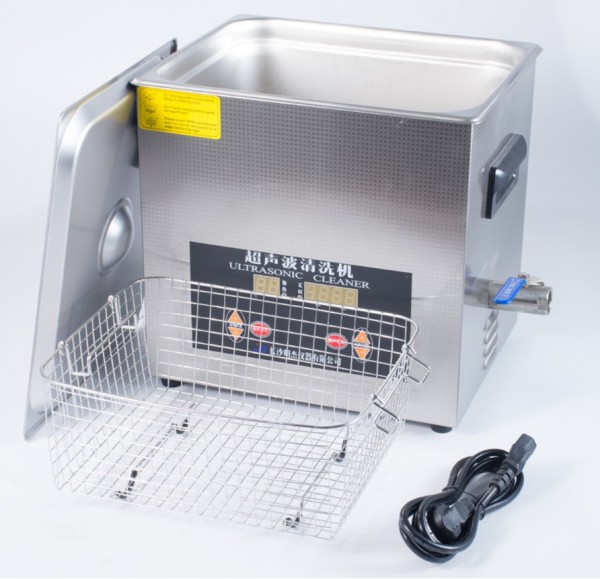 2.往超声波清洗槽内加入适量清水,并添加一定的清洗液,液面高度以浸没将要清洗的零部件为准,一般不超过清洗槽的四分之三,清洗液也不能太少,因为超声波换能器的在功作的时候是会发热的,如果太少会导至温度过高,严重的知有可以造成机器损坏,不能少于二分之一。
