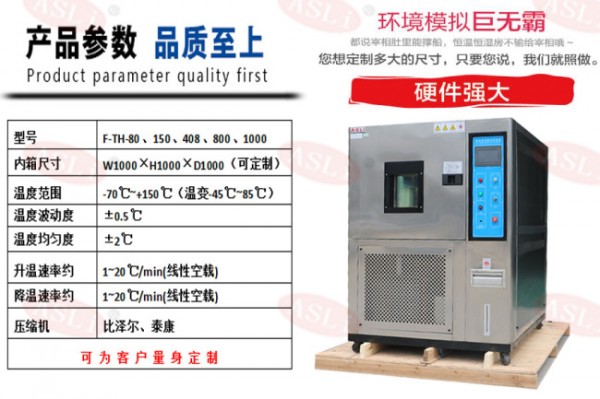 艾思荔温度速变试验箱供应商 采用韩国进口触摸屏控制器,法国泰康原装进口的压缩机,内外箱采用SUS304不锈钢,不结污垢,防护干烧,超长寿命。