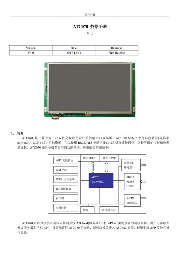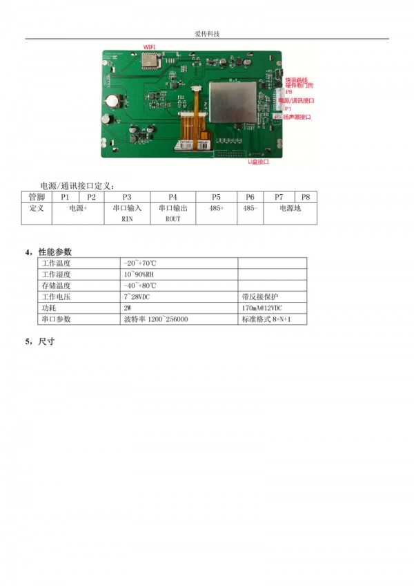 | 显示 | 7寸TFT, 800*480,64K真彩色 | 可做横屏/竖屏 |