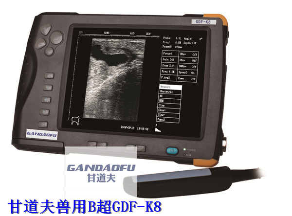 甘道夫动物B超K8是一款全防水型的手持式超声仪,抗震防摔设计是供牛,猪,羊,马等进行超声扫描的理想型设备,尤其适用于牲畜怀孕的快速诊断,肉质,性别鉴定以及乳牛场的繁殖.