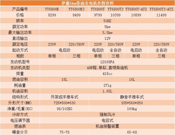 伊藤5kw柴油发电机YT6800T3:内燃机的种类十分繁多,常见的汽油机、柴油机是典型的内燃机。不常见的火箭发动机和飞机上装配的喷气式发动机也属于内燃机