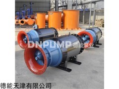 水轴(混)流泵的介绍QZB型轴流式潜水电泵和QHB型混流式潜水电泵是传统的分体式水泵—电动机机组的更新换代产品轴流式潜水泵、混流式潜水泵主要由泵体、叶轮、潜水电机等组成。电机与泵头共轴并构成一个整体,电机与泵使用机械密封隔开,电缆进线处用进线密封封好,使整个电机处于良好的密封状态,整机潜没在水中运行。整机内部有泄漏及温升保护装置,运行安全可靠。叶片可调,流量、扬程变化范围大。