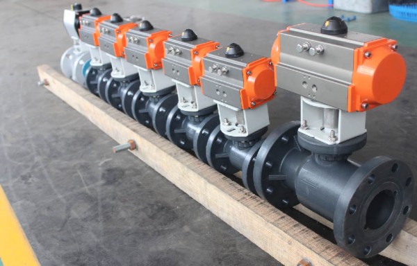 气动PVC法兰球阀阀体采用PVC材料,耐化学性非常好,对一般的酸、有机溶剂的抵抗性好。常用作PVC球阀的密封橡胶材料有三元乙丙橡胶EPDM和氟橡胶FPM等。根据其各自的特点而适用于不同的环境:EPDM可耐一般酸碱,耐化学药品性和耐水性好,但不耐矿物油和过热蒸汽(200℃),使用温度在-40~120℃。而FPM耐油、耐热、耐酸碱和耐化学药品性能佳。常用于耐高温、耐腐蚀的场合,使用温度在-20℃~210℃。