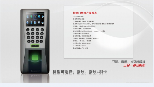 5.支持指纹/ID卡/MF卡,使用范围广,标配指纹和ID卡功能,可选配Mifaer卡;