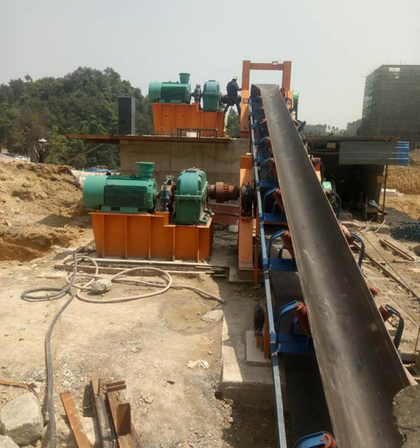1.采用机头双驱动,传动滚筒及驱动装置分别布置在缷载位置和前下部。