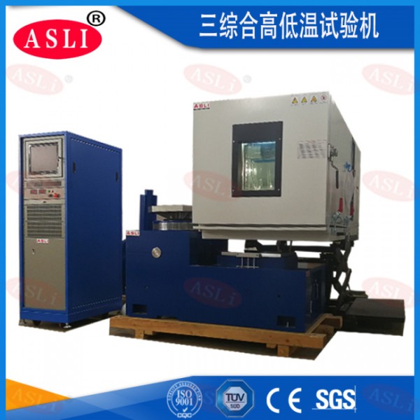 艾思荔高低温三综合试验箱生产厂商 董S 工作室下方装有可供振动台体移出移进的导轨(在不进行振动试验时移出振动台体);振动台面与工作室低部连接密封采用多层环氧树脂与耐高温硅橡胶相间式接插连接(以便密封);主体部分:主体外壳采用优质A3钢板并且经过喷塑处理,内胆采用SUS不锈钢镜面板保温介质为超细玻璃棉;
