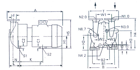 | N1.0 吸气口。N2.0 排气口。N3.0 工作液接口。N4.2 排水口。N8.7 气蚀保护(内置) | |