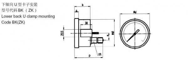 Φ 100 全不锈钢耐震压力表(外卡安装式) YTN-100 Φ 100 一般耐震压力表(外卡安装式) |