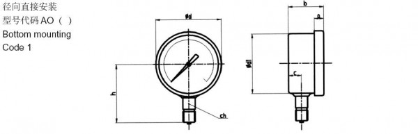 此类(外卡锁式罩壳、两件式)压力表采用独特的不锈钢外壳及测压部件的两件式设计,分为径向、下轴