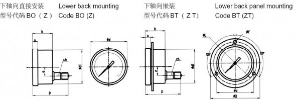 向和下轴向、U型卡子三种安装款式。外壳罩圈具有锁紧及加铅封的功能。表壳顶部设有充液塞,可在现场向表内充液。仪表根据是否充液的选择,可分为YTH及YTHN型。YTH型为不锈钢防腐压力表“干式”;YTHN型为不锈钢耐震压力表“充液型”,通过向表内充液可有效降低表针在工作中的振颤,同时,还可延长仪表内机部件的使用寿命。