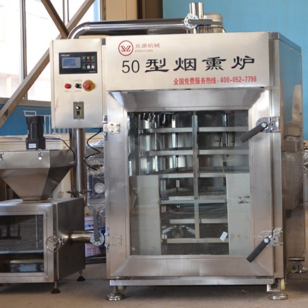 诸城小型烟熏炉具有蒸煮、干燥、烘烤、烟熏、上色等功能,有着非常良好的节能效果。外均有悠久的历史,烟熏指的是用相应的木材不完全燃烧时生产成的挥发性物质进行熏制的过程。肉制品烟熏的目的是使肉制品脱水,富裕产品特殊的香味。改善肉的颜色并且有一定的杀菌防腐和抗氧化作用,以延长肉制品的保质期