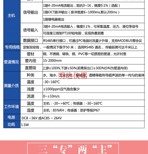 是以“速度差法”为原理,测量圆管内液体流量的仪表。它采用了的多脉冲技术、信号数字化处理技术及纠错技术,使流量仪表更能适应工业现场的环境,计量更方便、经济、准确。产品达到外水平,广泛应用于石油、化工、冶金、电力、给排水等领域。