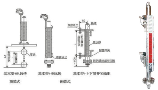 侧装磁性翻板液位计与液位控制开关和液位远传变送装置配套使用,可以对液位进行远距离控制及显示。因此它被广泛地应用于电力、石油、化工、冶金、环保、船舶、建筑、食品等行业生产过程中的液位测量与控制。