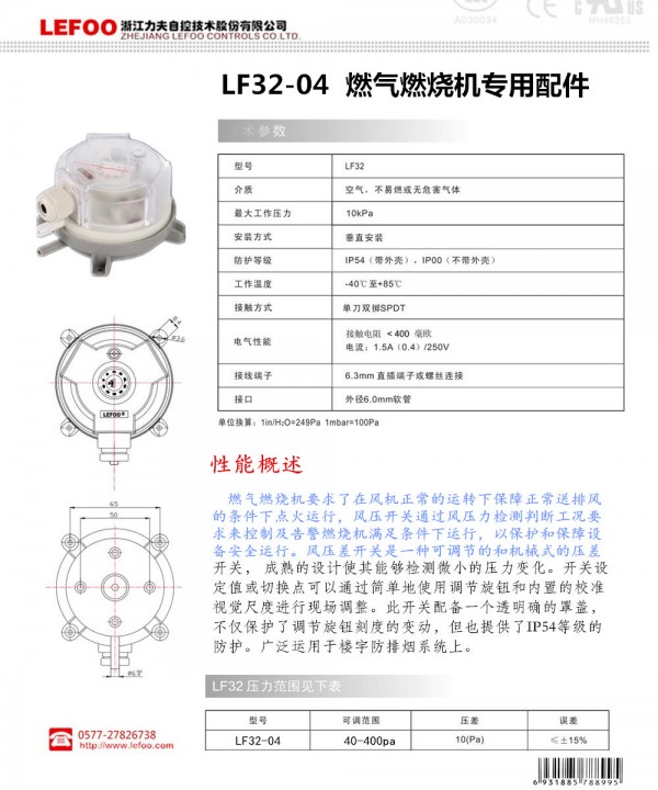 免责声明:以上所展示的[LF32-04 风压开关]信息由会员[浙江力夫机电制造有限公司]自行提供,内容的真实性、准确性和合法性由发布会员负责。