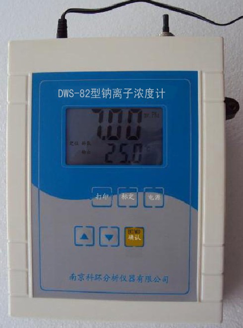 数字式钠离子浓度计用于水溶液中钠离子浓度的测量。特别适用于电厂,半导体厂等对高纯水水质的监测,如蒸馏水,凝结水等。DWS-82型钠离子浓度计采用大尺寸3位半LED数码显示,能直接显示被测Na+值和被测溶液的温度值。仪器具有自动和手动两种温度补偿功能。当采用仪器附有的传感器时,可进行自动温度补偿功能和对溶液温度