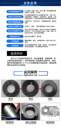 一机多用:可进行堆焊、表面强化等功能。可对黑色金属(球铁、灰铁、不锈钢等)、有色金属(铜、铝等)进行焊补。