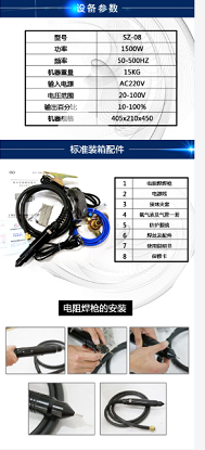电源:逆变电源,节能环保,效率高,性能稳定,机器轻便灵巧。