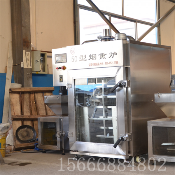 烟熏炉具有优异的发烟及循环系统,可使炉内的烟雾均匀分布,从而使肉产品着色均匀,色泽美观,保证产品具有较高的出品率。熏制的食品不含焦油,熏制后无污染,无废弃物排放。不但能提高产品质量,保证卫生,同时也能降低产品成本,是现场制作肉类食品的好帮手。它可以配上小型拌馅机、小型灌肠机在市内各大型超市、各大中型市场中搞现场制作。同时也可用于大中小型食品加工厂。适用于各式香肠、各式火腿、干肠、烤鸡、烤鸭、烤肉等中西式肉制品,也适用于各式午餐肉、烤鱼片、熏豆干等其他类。