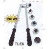 扩管器又称为涨管器。主要用来制作铜管的喇叭口和杯形口(圆柱形口)。喇叭口形状的管口用于螺纹接头或不适于对插接口时的连接,目的是保证对接口部位的密封性和强度。杯形口则在两个铜管连接时,一个插入另一个管管径内使用。扩管器的夹具分成对称的两半,夹具的一端使用销子连接,另一端用紧固螺母和螺栓紧固。两半对合后形成的孔按不同的管径制成螺纹状,目的是便于更紧地夹住铜管。孔的上口制成60°的倒角,以利于扩出适宜的喇叭口。