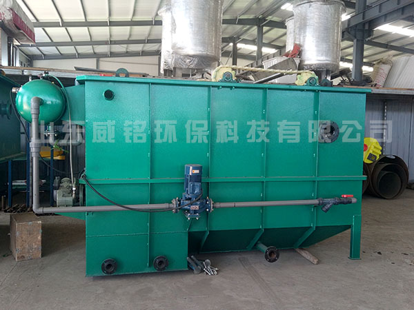 空气通过泵送入压力容器罐在,在0.5MP压力下被强制溶解在水中,在突然释放的情况下,产生剧烈搅动和涡流,形成直径约为20-80um的微气泡,从而附于废水中的絮凝体上,从而降低絮凝体的上升比重,清水彻底分离出来。
