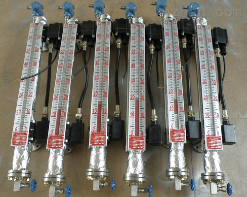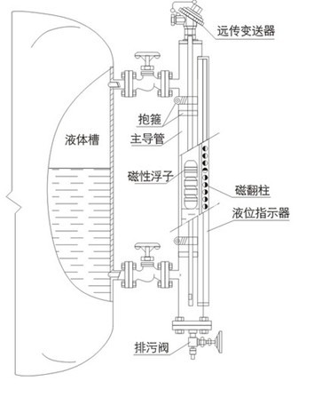 在浮子液位计上安装变送器,通过浮子上下移动,经磁耦合作用使导杆内测量元件依次动作,获得电阻信号变化,转换成0~10mA或4~20mA的标准信号输出,与显示仪表或计算机连接,达到远传目的。