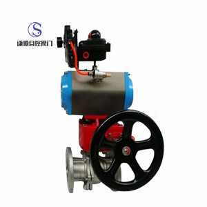气动带手动自动复位球阀是一种转角为0-90°的旋转类阀门,密封性能优良,流量系数大,流阻系数小,结构简单,使用寿命长,便于维修。配用气缸式执行机构单作用。产品广泛应用于化工、石油、轻纺、电力、食品制药、制冷、造纸行业的系统控制。