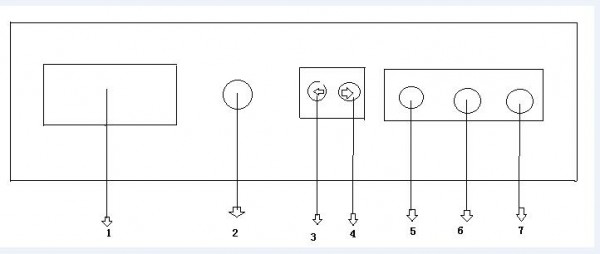 MENU 功能键:按一次显示区显示A100,表示手动模式,可以按3、4键调节功率,开始照射或停止按2键。再按一次显示区显示B100表示PLC模式,可以按3、4键调节功率开始照射或停止须要通过外接PLC信号控制。再按一次显示区显示C100,表示脚踏板工作,可以按3、4键调节功率,开始照射货或停止须要通过外接脉冲信号控制。再按一次显示区域显示d100,表示手动触摸时间计时控制,可以按3、4键调节照射时间,e100表示时间计时控制