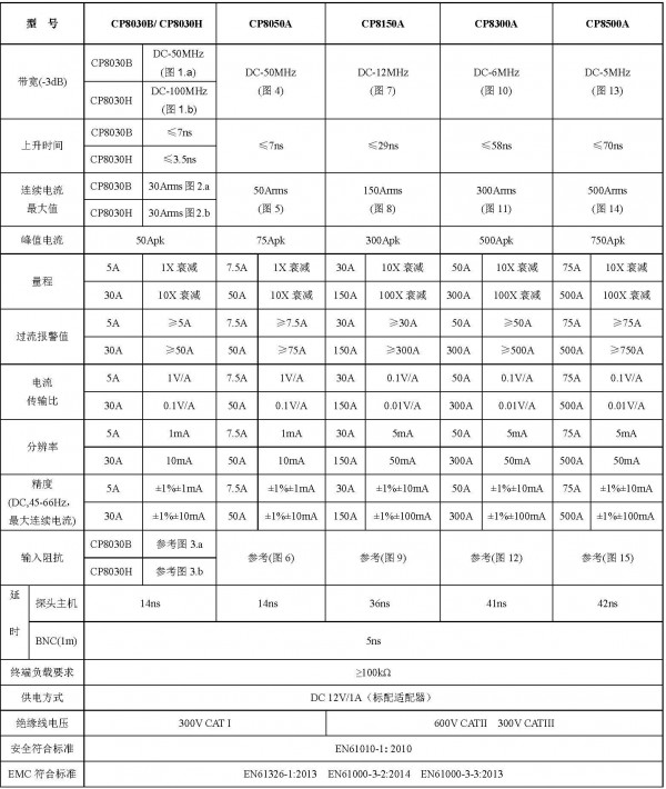 5.高频交直流电流探头 CP8000 系列产品电气规格