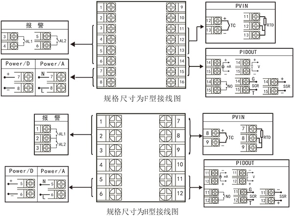 1、选型时请根据接线图来选择功能,由于尺寸小的仪表接线端子少,带不了全功能,有的功能在同组端子上,只能选择其中一种功能。