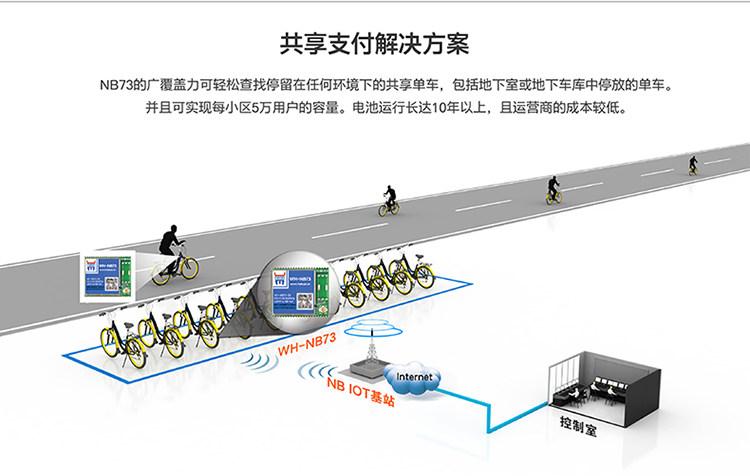NB73的广覆盖力可轻松查找停留在任何环境下的共享单车,包括地下室或地下车库中停放的单车。并且可实现每小区5万用户的容量。电池运行长达10年以上,且运营商的成本较低。