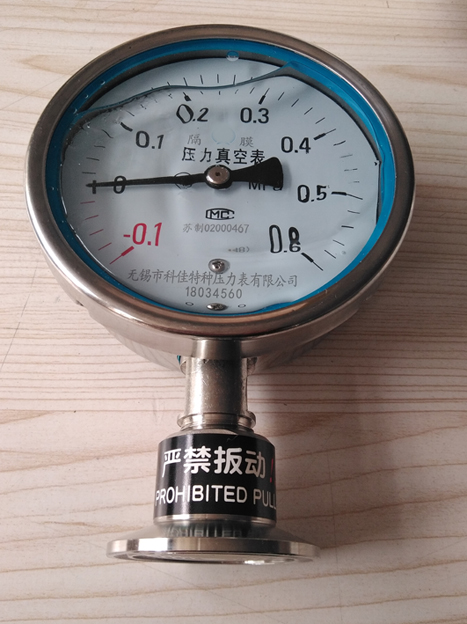 隔膜压力真空表有三部分组成,隔膜体上配用不同的功能表头组成不同功能的隔膜压力表。功能表头采用真空表就组成真空隔膜表;功能表头采用压力真空表就组成隔膜压力真空表等。适用于化学工业、化纤、制药机械、合成纤维、石油、染化、制碱等工业,并有各种材质的隔离膜片及各种接口形式以供不同的工矿条件选用。