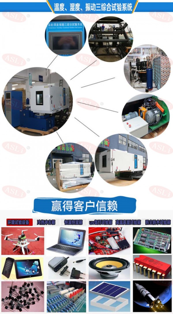 广东艾思荔检测仪器有限公司成立于2006年,公司专业制造各种质量检测仪器、试验设备等高新技术产品。企业的主要产品有:恒温恒湿试验机、高低温湿热交变试验箱、快速温变试验机、冷热冲击试验机、温度冲击试验机、步入式恒温恒湿试验室、高低温低气压试验机、盐雾试验机、温度/湿度/盐雾复合式试验机、温度/湿度/振动三综合试验机、二氧化硫盐雾试验机、高温老化试验房、蒸气试验箱、真空高温试验机、氮气高温试验机、氙灯老化试验机、UV紫外线老化试验机、淋雨试验箱、砂尘试验箱、臭氧老化试验箱、拉力试验机、纸箱抗压试验机、PCT高压加速老化试验箱,双95/湿冷冻/热循环试验箱、HAST非饱和高压高温试验机、振动试验台、加速度冲击试验台、碰撞试验机、跌落试验机、二次元、三次元;;(非标试验仪器设备)等质量检测仪器。公司通过数十年的研究与发展,巩固了艾思荔检测仪器在测试仪器设备领域中的领航地位,对产业界研发高质量、高价值的产品发挥了重要的作用。