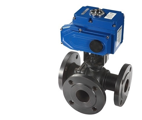 电动三通球阀可为L形和T形,L形三通球阀用于介质流向的切换,能使相互垂直的两个通道连接;T形三通球阀用于介质分流、合流及流向切换。T形三通可以使三个通道相互连通或使其中的两个通道连通。三通球阀一般采用两阀座结构,亦可根据用户要求采用四阀座结构。