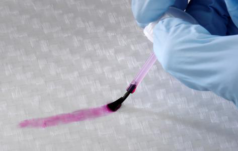 只要使用测试墨水瓶内自带的刷子,在材料表面快速涂上测试墨水就完成了测试过程。在表面预处理完成后,可以尝试使用具有高表面张力的墨水(如读数为72 mN/m的墨水)。如果刷上的墨水痕迹能够稳定2秒钟不收缩,表示材料表面的润湿性较高,该测试样品的表面张力至少和测试墨水瓶上的读数相等。如果测试墨水的痕迹边缘有收缩,就应当尝试下一个较低等级的墨水。这样,就可以逐步接近待测材料的表面张力值。直到后使用的测试墨水表现出良好的痕迹稳定性至少2秒,待测材料的表面张力就等于该测试墨水的读数。