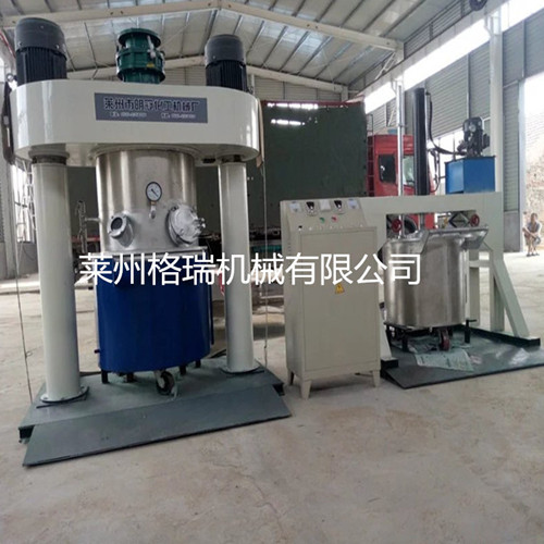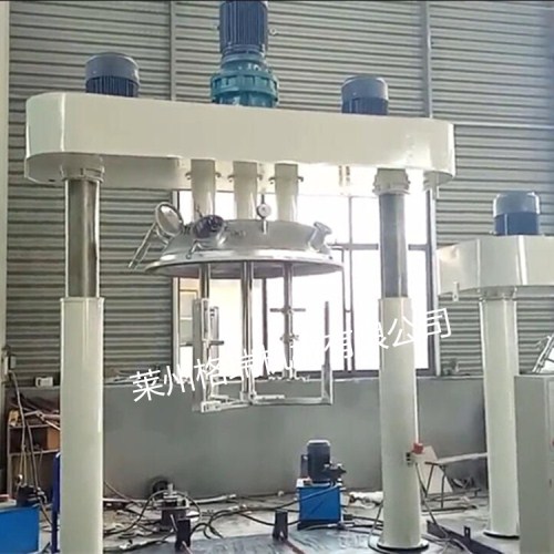 山东省莱州市沙河镇格瑞化工机械集团有限公司生产的强力分散机(多功能混合机)是用于物料高速分散、混合的设备,搅拌形式由低速的山字形或锚式搅拌桨与高速锯齿形分散。锚式搅拌桨围绕自身的轴心不停旋转翻滚物料,防止固体颗粒下沉和集聚;两个高速分散轴带有不同形式的分散盘(旋片式、锯齿形、蝴蝶型)高速运转,产生强大的剪切力将固体颗粒溶解、粉碎、均匀分散到物料之中。
