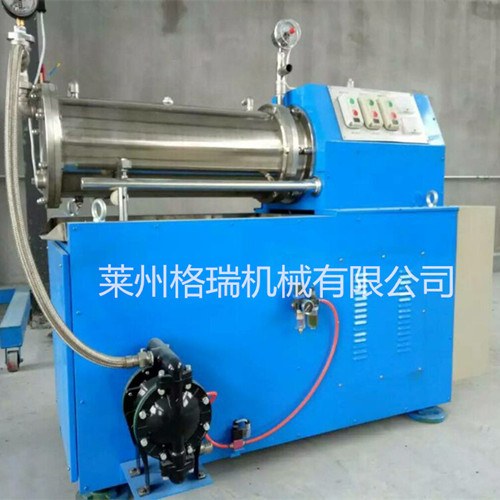 莱州格瑞机械有限公司专业生产卧式砂磨机,立式砂磨机及各种涂料乳胶漆设备,油漆,涂料颜料专业设备。卧式砂磨机相比较立式的砂磨机研磨细度高,效率高。筒体内的旋转主轴上装有多层圆盘。当主轴转动时,研磨介质在旋转圆盘的带动下研磨压入筒内的浆料,使其中的固体物料细化合格的浆料穿过小于研磨介质粒度的过滤间隙或筛孔流出。筒体部分备有冷却或加热装置,以防筒内因物料、研磨介质和圆盘等相互摩擦所产生的大量的热影响产品质量,或因送入的浆料冷凝以致流动性降低而影响研磨效能。研磨介质可用适当的天然砂,也可用粒度为0.1~2毫米的人造玻璃珠。当给料粒度小于450微米时,排料粒度可达1微米以下。这种磨机在细化物料的同时,还有分散和混合作用,适于磨制染料、颜料、油漆涂料、药物和其他悬浮液或胶悬剂等。