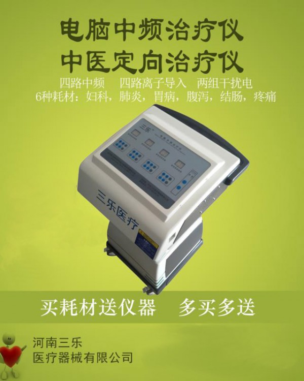 三乐牌中频治疗仪具有4路中频输出、4路离子导入输出、2组干扰电治疗。100个使用处