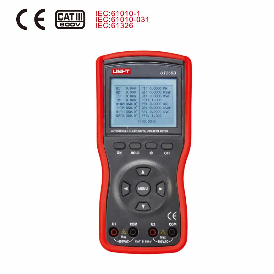 优利德 智能型双钳数字相位伏安表 UT265B 功率测量、自动量程