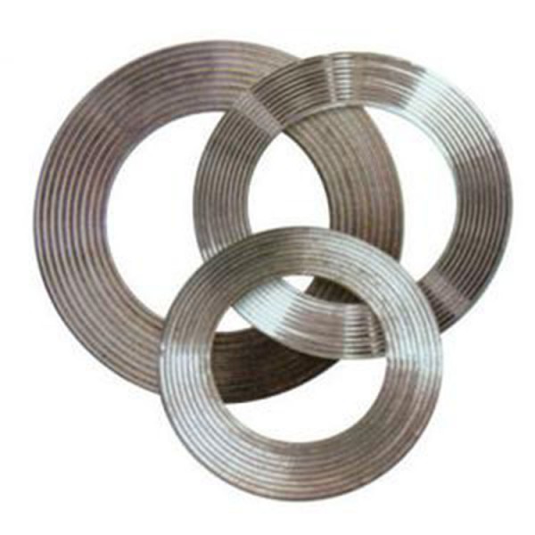金属齿形垫片是一种金属软垫片,密封效果优于金属平垫,一般用的车床在金属不锈钢平垫片的二面加工成同心的90度夹角波形的锯齿状沟槽,齿形组合垫在较低的预紧力下使用是先的垫片,表面柔软的密封层避免了金属对金属的直接接触,且能可靠、紧密的结合,保护了金属法兰不被损伤,即使在高的载荷下。齿形组合垫尤其适合于高温、高压,工况条件交变的场合,在热交换器、容器、反应釜的法兰连接处,是传统金属包覆垫片的理想替代品。