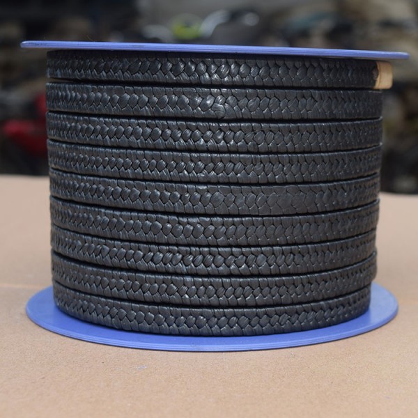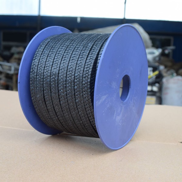四氟黑色的盘根(ps:俗成 黑四氟盘根 石墨聚四氟乙烯盘根) 是黑四氟线(四氟粉料加工中加入石墨)编织盘根。特点,防腐蚀,润滑,耐磨, 防腐性较石墨好。柔软,密封性好,会弹较石墨盘根好。