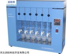 本脂肪测试仪根据索氏抽提原理、用重量测定方法来测定脂肪含量。即在有机溶剂下溶解脂肪,用抽提法使脂肪从溶剂中分离出来,然后烘干,称量,计算出脂肪含量。 本脂肪测定仪主要有加热抽提,溶剂回收和三大部分组成。操作时可以根据试剂沸点和环境温度不同而调节加热温度,试样在抽提过程反复浸泡及抽提,从而达到快速测定目的。