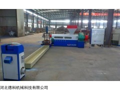 该机组主机采用强行塑化,自排气螺筒,塑料在破碎清洗完成,无需脱水即可直接用于挤出造粒。该机组适用于PE、PP、PET、等膜状、丝状硬下角料等新旧塑料。