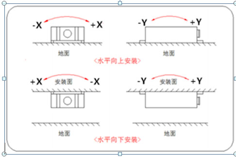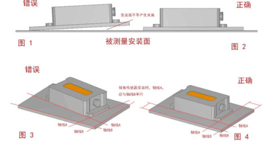 请按照正确的方法进行安装倾角传感器,不正确的安装会导致测量误差,尤其注意一“面”, 二“线” :