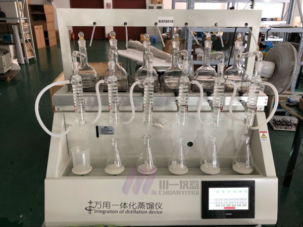 川一仪器系列CYZL-6全自动一体化蒸馏仪是根据实验室蒸馏预处理操作规程,集恒温加热、蒸馏终点自动控制、冷却水循环于一体的智能蒸馏处理装置。该仪器广泛适用于环保、疾控、水产、供排水、高校、科研院所、厂矿企业等各类化学实验室需要蒸馏处理的场所,如挥发酚、氨氮、凯氏氮油中水分等项目的蒸馏处理;食品检测领域中的二氧化硫残留量以及甲醛、酒精度等的蒸馏操作。