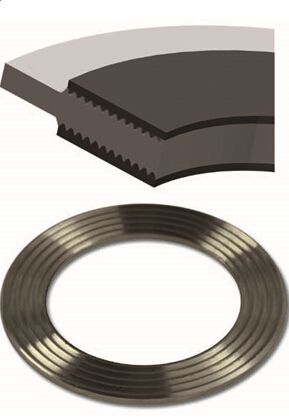 金属齿形垫片根据不同的介质,可选择柔性石墨、PTFE、无石棉板或其它一些软金属,粘贴在垫片的两面。也可不带密封层直接使用,且能达到良好的密封效果,但在高压场合中容易对法兰的表面造成损失。