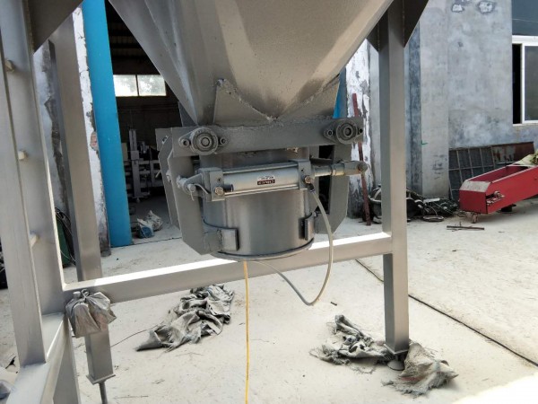 1、提升机或者皮带输送机把块状煤炭送进包装机的进料口(进料口上下方各有一个限位开关,没料的时候会自动让输送机上料,料满了会自动让输送机停止)