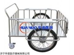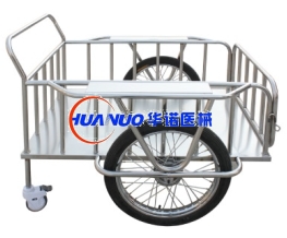 B31型 全不锈钢送物车 主要技术参数:规格:1140*890*930mm1、前面两大轮为摩托车专用轮。2、后面两小轮为Φ125号包罩静音万向轮。3、车架材料为Φ32*1.5不锈钢圆管。4、车两边扶手采用1.0mm不锈钢拉丝板。